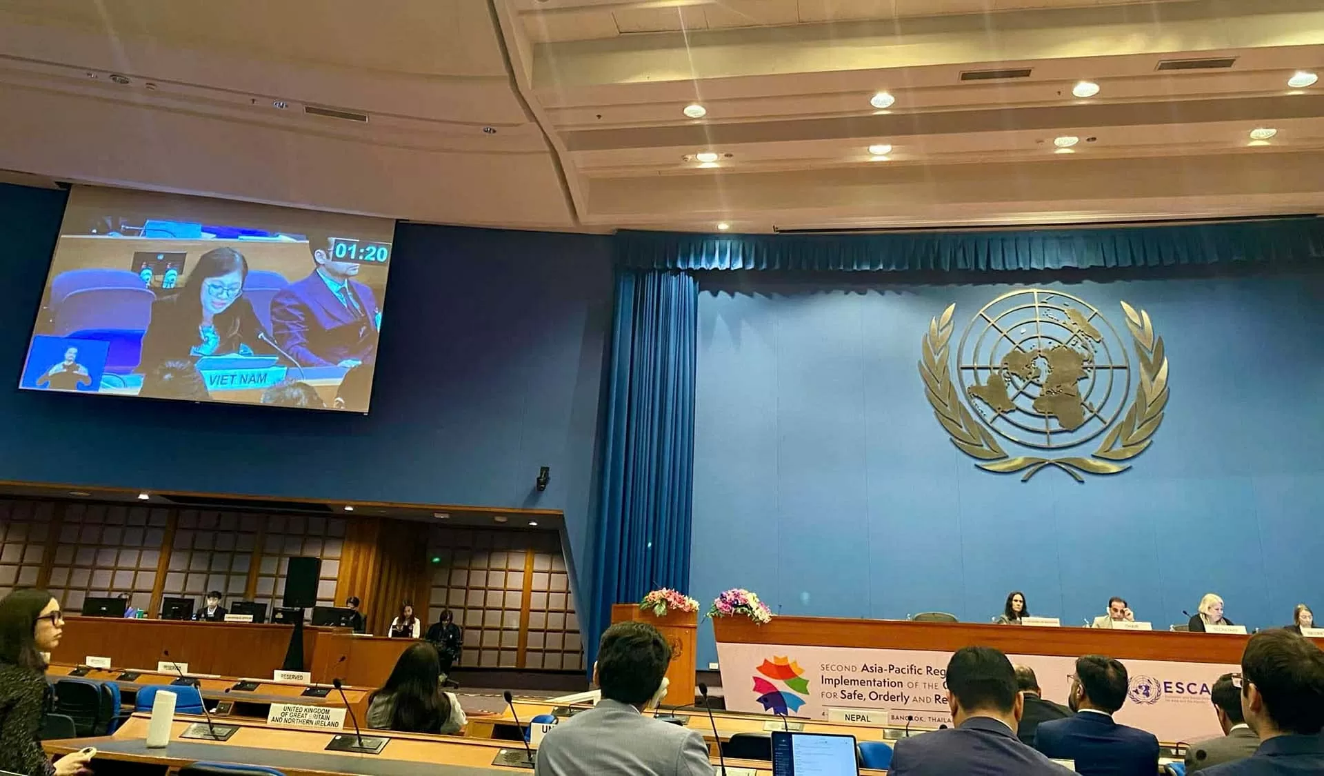 Đại diện đoàn Việt Nam, bà Phan Thị Minh Giang, Phó Cục trưởng Cục Lãnh sự, Bộ Ngoại giao đã chia sẻ những kết quả nổi bật của Việt Nam trong triển khai Thỏa thuận GCM trên 3 lĩnh vực gồm hoàn thiện chính sách, pháp luật liên quan đến di cư quốc tế; tăng cường công tác thu thập thông tin, dữ liệu về di cư quốc tế và đẩy mạnh hợp tác quốc tế để mở rộng các kênh di cư hợp pháp, an toàn, bảo đảm quyền an sinh xã hội và sức khỏe của người di cư.
